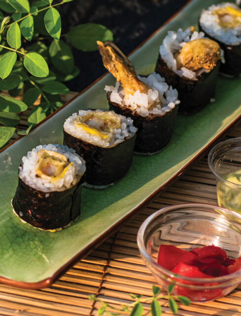 উপকরণ: পানি সোয়া এক কাপ, সুশি চাল ১ কাপ, রাইস ভিনেগার ১ টেবিল চামচ, মিরিন ভিনেগার ২ চা-চামচ, লবণ স্বাদমতো, গাজর ৪০ গ্রাম, চিংড়ি ২৫০ গ্রাম, তিলের তেল পরিমাণমতো, গোলমরিচগুঁড়া ১/২ চা-চামচ, ডিম ৪টি, নরি শিট ৪টি, তিল আড়াই টেবিল চামচ, টবিকো ৪ চা-চামচ, পিকেলড জিঞ্জার পরিমাণমতো, ওয়াসাবি অল্প পরিমাণ, সয়া সস পরিমাণমতো।