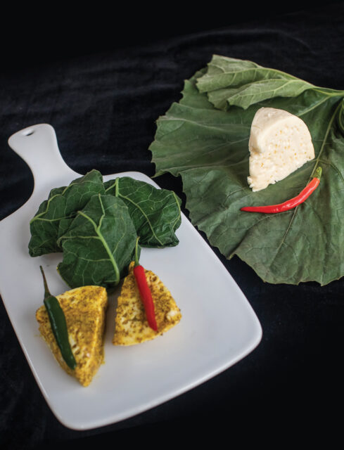 উপকরণ: পনির ২৫০ গ্রাম, সরিষাবাটা ১ টেবিল চামচ, নারকেলবাটা ১ টেবিল চামচ, কাজুবাদামবাটা ১ টেবিল চামচ, সরিষার তেল আধা কাপ, টমেটো (পুড়িয়ে বেটে নেওয়া) ১টি, কাঁচা মরিচ (চেরা) ৮-১০টি, লবণ পরিমাণমতো, চিনি স্বাদমতো, মিষ্টিকুমড়ার পাতা কয়েকটি।