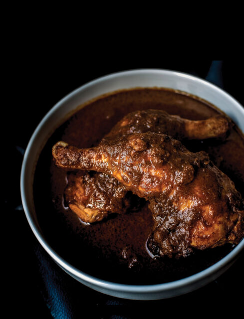উপকরণ: চিকেন ১ কেজি, পেঁয়াজ ১ কাপ, রসুনবাটা ১ চা-চামচ, আদাবাটা ১ চা-চামচ, কাজুবাদামবাটা ২ চা-চামচ, লেবুর রস ২ টেবিল চামচ, টক দই ১ চা-চামচ, টমেটো ১ কাপ, চারমগজ দানা ১ চা-চামচ, গোলমরিচগুঁড়া সামান্য, চিনি সামান্য, শুকনো মরিচগুঁড়া ১ চা-চামচ, জিরা আধা চা-চামচ, ধনে আধা চা-চামচ, গোলমরিচ ৭-৮টি, এলাচি পরিমাণমতো, লবঙ্গ পরিমাণমতো, দারুচিনি পরিমাণমতো, লবণ পরিমাণমতো, তেল ১ কাপ।