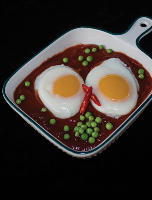 প্রণালি: একটি পাত্রে তেল ও ঘি গরম করে, সব বাটা ও গুঁড়া মসলা কষিয়ে নিন। এরপর দই, চিনি ও লবণ দিয়ে আরও কিছুক্ষণ কষিয়ে নেওয়া চাই। তারপর আধা কাপ পানি অল্প অল্প করে দিয়ে কষিয়ে নিন। এবার দুধ যোগ করুন। ফুটে উঠলে একটি একটি করে ডিম ভেঙে সাবধানে যোগ করুন, যেন ছড়িয়ে না যায়। সবশেষে মটরশুঁটি ও বেরেস্তা যোগ করে চুলা বন্ধ করে দিন।