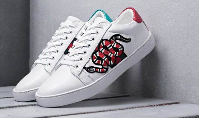 স্নিকারের বাজারে গুচির নামডাক আছে। ব্র্যান্ডটি এবার বাজারে এনেছে সাগা স্নিকার। অবশ্য যারা খুব হালকা নকশাদার অথবা স্পোর্টিং স্নিকার পরতে স্বাচ্ছন্দ্যবোধ করেন, তাদের জন্য নয় এগুলো। কেননা এ স্নিকারগুলো বেশ ভারী ও নকশাদার। এতে জুড়ে দেওয়া হয়েছে দামি রত্নপাথর। তবে সরাসরি জুতায় সেঁটে দেওয়া হয়নি, আলাদা লেইস তৈরি করা হয়েছে দামি রত্ন বসিয়ে। লেইস জুড়ে দেওয়া হয়েছে জুতার উপর।
