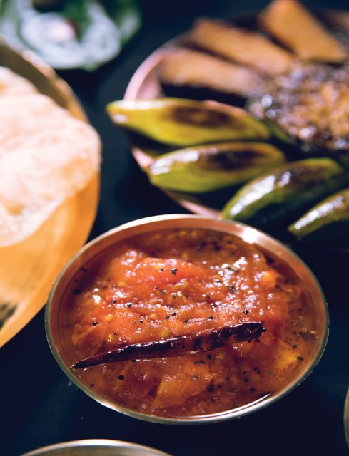 প্রণালি: হাঁড়িতে টমেটো ও তেঁতুল, পরিমাণমতো লবণ ও সামান্য হলুদ দিয়ে সেদ্ধ করে নিন। কড়াইতে তেল গরম করে শুকনো মরিচ, তেজপাতা ও সরিষা দিন। এবার সেদ্ধ করা টমেটো ঢেলে দিন। পরিমাণমতো লবণ ও চিনি দিয়ে ফুটিয়ে নামিয়ে নিন।