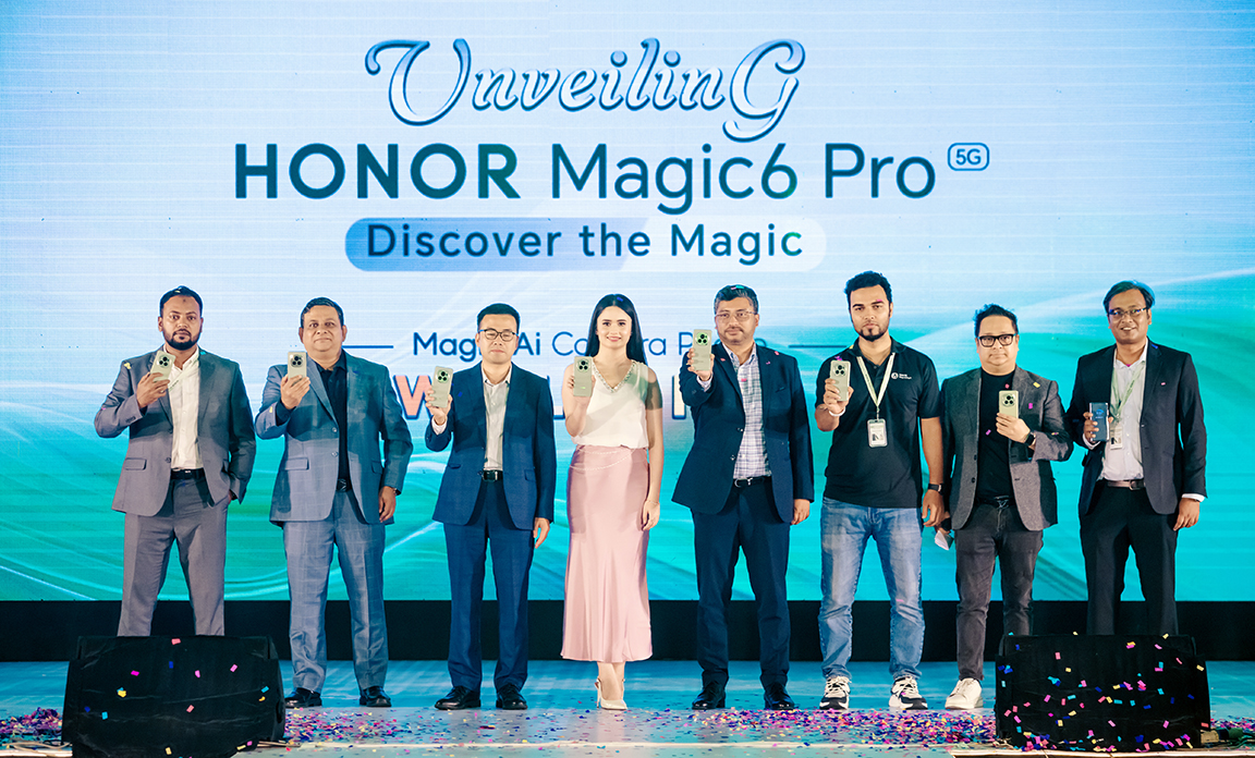 বাংলাদেশের বাজারে এলো ডিএক্সওমার্ক রেটিং অনুযায়ী বিশ্বের নম্বর ওয়ান স্মার্টফোন অনার ম্যাজিক ৬ প্রো। বৃহস্পতিবার (২৩ মে ২০২৪) সন্ধ্যায় রাজধানীর পাঁচ তারকা হোটেল ইন্টারকন্টিনেন্টাল ঢাকায় এক জমকালো অনুষ্ঠানের মাধ্যমে উম্মুক্ত করা হয় এই স্মার্টফোন। অনুষ্ঠানে উপস্থিত ছিলেন বাংলাদেশে অনারের একমাত্র পরিবেশক এবং স্মার্ট টেকনোলজিস (বিডি) লিমিটেডের ব্যবস্থাপনা পরিচালক মোহাম্মদ জহিরুল ইসলাম, অনার বাংলাদেশের কান্ট্রি ডিরেক্টর মিস্টার ল্যাং, ডেপুটি কান্ট্রি ডিরেক্টর মুজাহিদুল ইসলাম, জিএম আবদুল্লাহ আল মামুন, ডিজিএম শুভংকর গোলদার জনি-সহ আরও অনেকে। অনুষ্ঠানে অনার বাংলাদেশের ব্র্যান্ড অ্যাম্বাসেডর অভিনেত্রী জান্নাতুল ফেরদৌস ঐশীর সঙ্গে পরিচয় করে দেওয়া হয়। এক সংবাদ বিজ্ঞপ্তিতে এসব তথ্য জানানো হয়েছে।