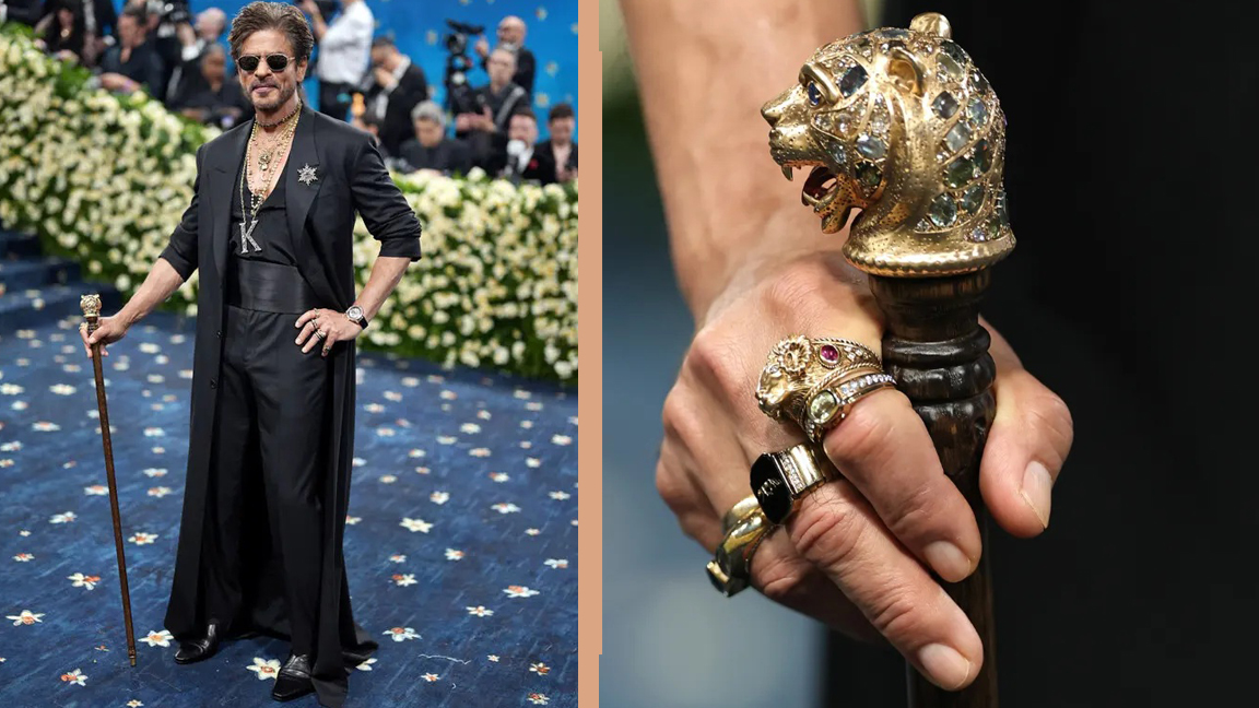 মেট গালা এবারে মাতিয়ে রেখেছিলেন শাহরুখ খান। সামাজিক যোগাযোগমাধ্যমে বলিউড কিং খানের জয়জয়কার। প্রথমবারের মতো গেলেন, দেখলেন, জয় করলেন। তার পোশাক নিয়ে চায়ের কাপে ঝড় উঠেছে, তবু সুযোগ আছে মাইক্রোস্কপিক জুমের। সেখান থেকেই মিলল তার হাতের হেড কেইনে স্টেটমেন্ট পিসের সন্ধান। যেখানে দেখা যাচ্ছে রয়েল বেঙ্গল টাইগারের মাথার উপস্থিতি।